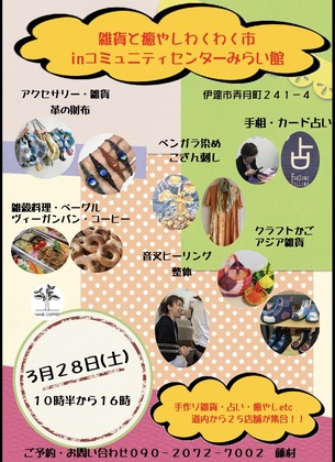 ◆3月28日(土)【雑貨と癒やしわくわく市inコミュニティセンターみらい館】◆