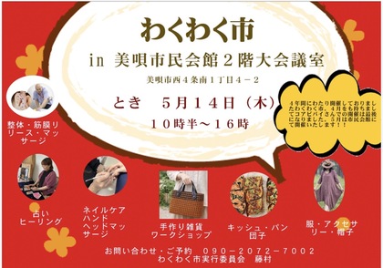 ◆5月14日(木)【わくわく市in美唄市民会館2階大会議室】◆